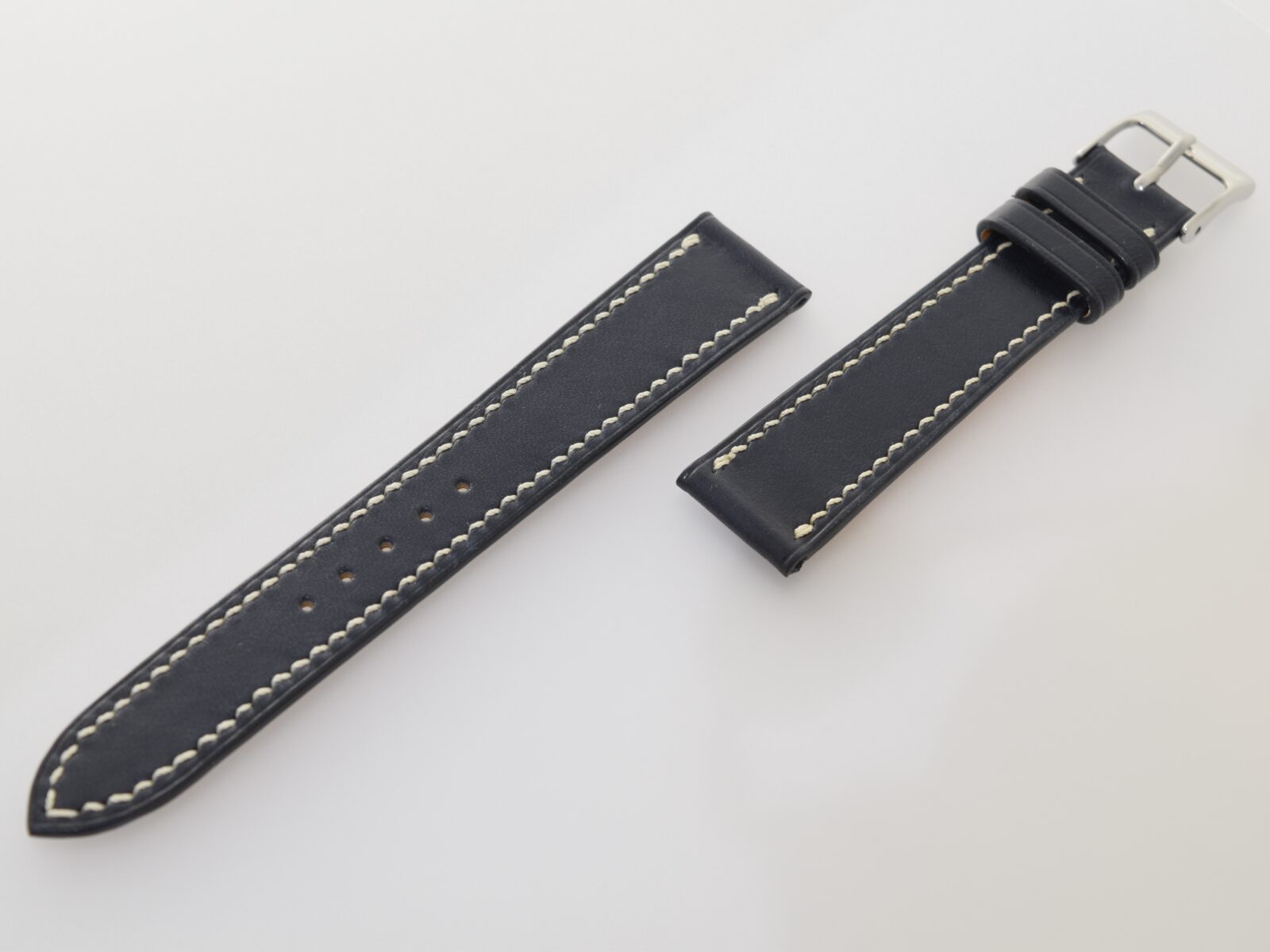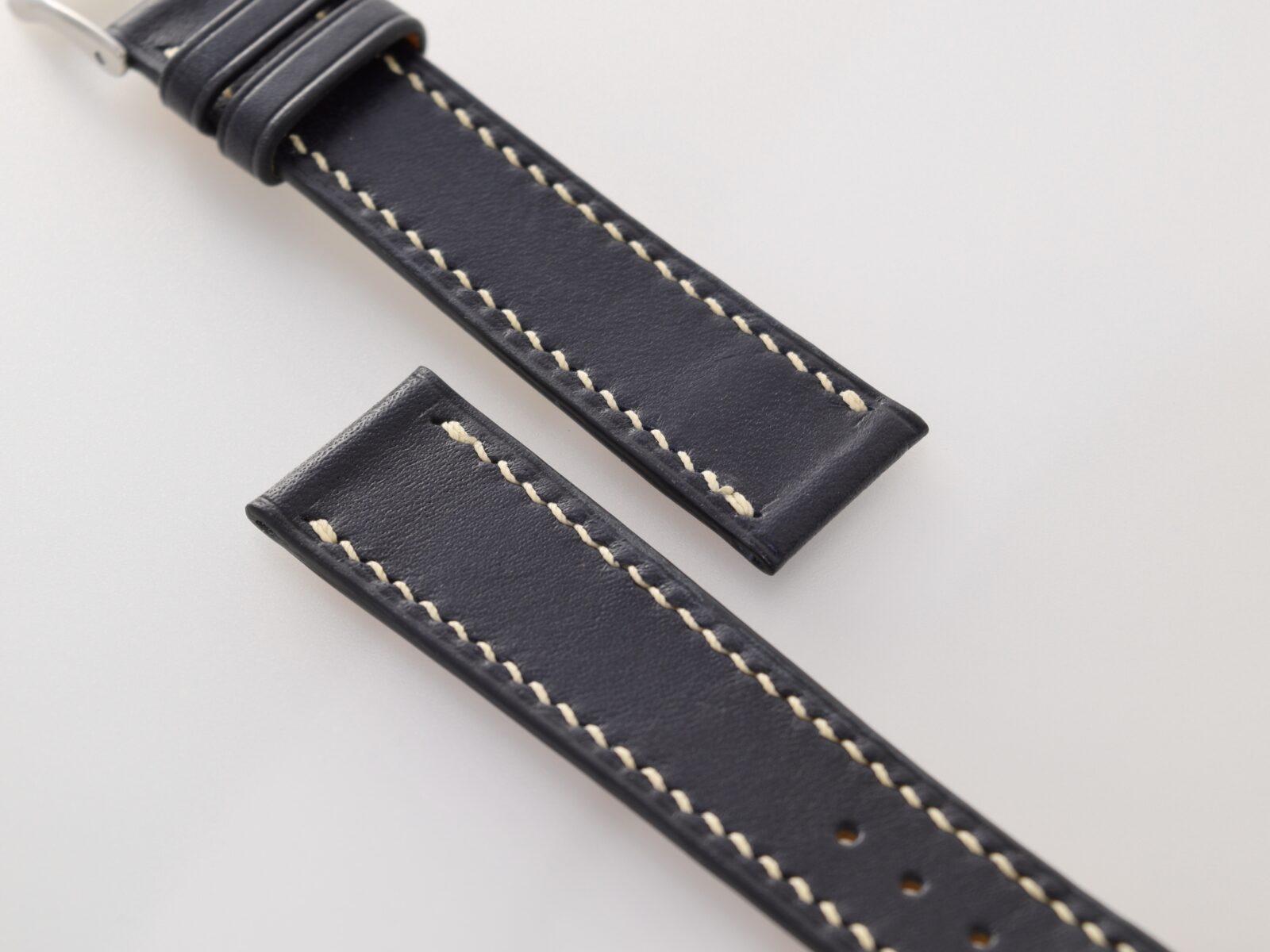 クリーム色のステッチは全てハンドステッチで、職人により一目一目丁寧に縫い込まれています。両面とも縫い目が斜めに出るようにしてあり、ハンドステッチらしい縫い目が特徴です。