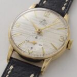 波のような水平方向の模様が特徴的なダイアルはプリントではなく、凹凸により波型を表現している為、光りの角度で見せる表情がかわる他ではあまり見ることのできない文字盤です。