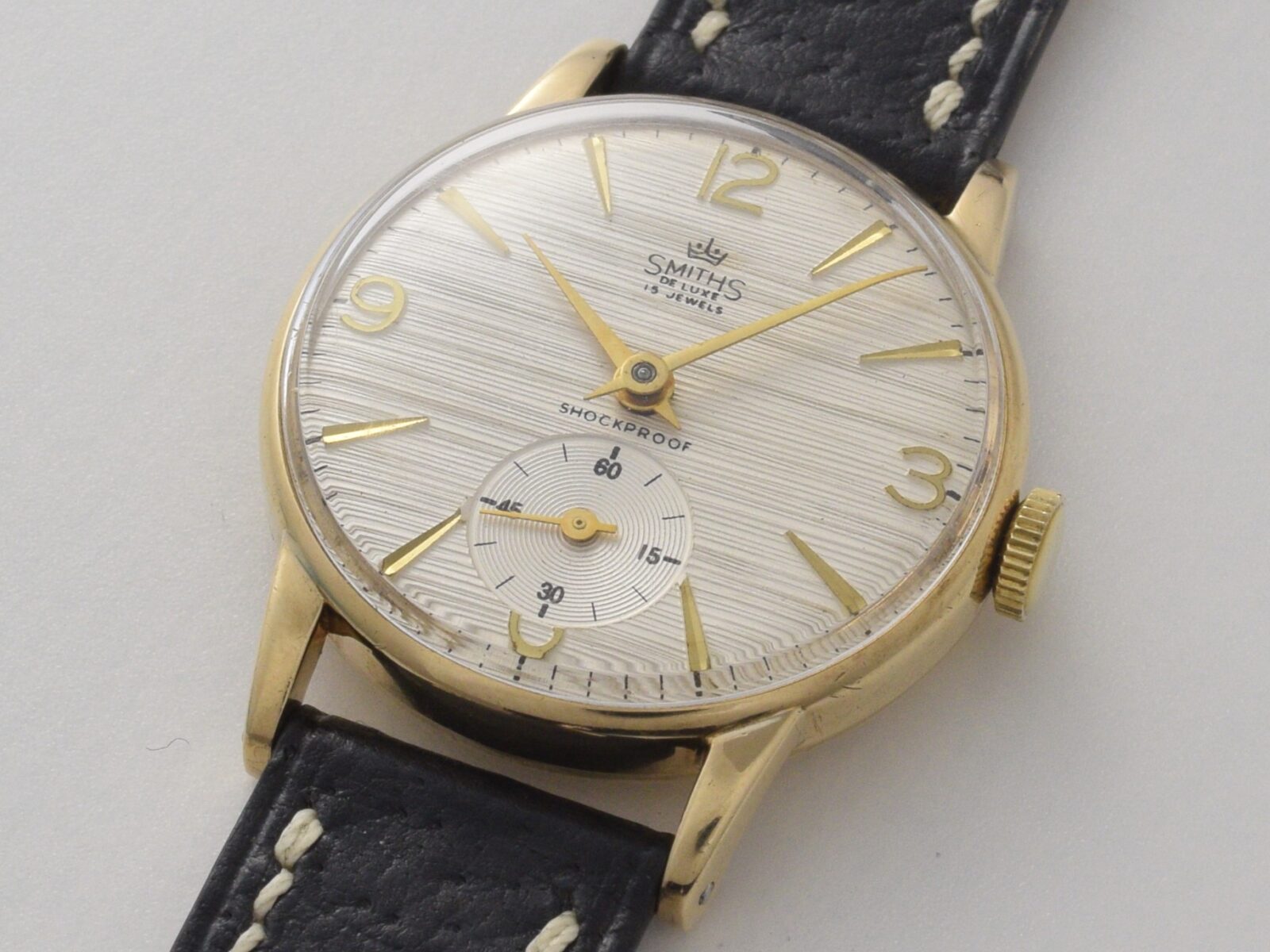 イギリスのヴィンテージウォッチの代表格のSMITHSの9金無垢ケースのDe Luxeです。